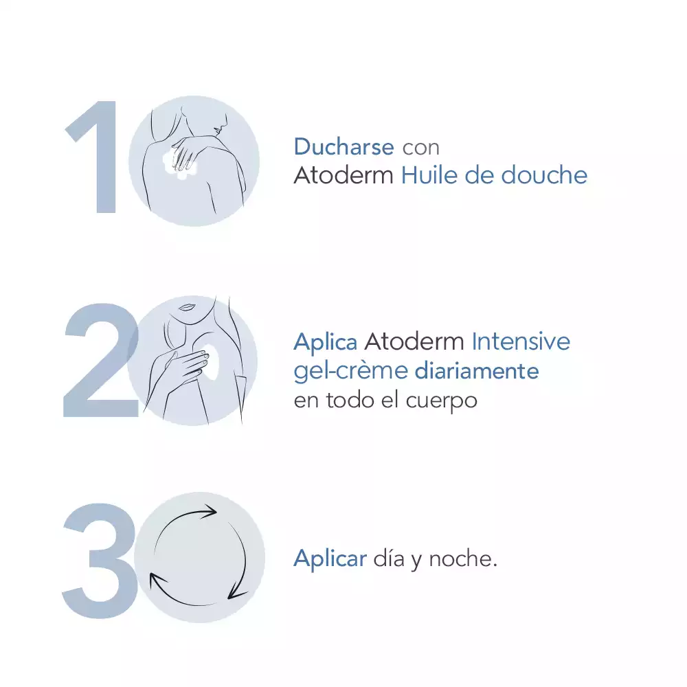 Atoderm Intensive Gel-crème es el primer producto para el cuidado de la piel nutritivo y anti-picazón con una textura fresca y ultraligera para una fácil aplicación y absorción.