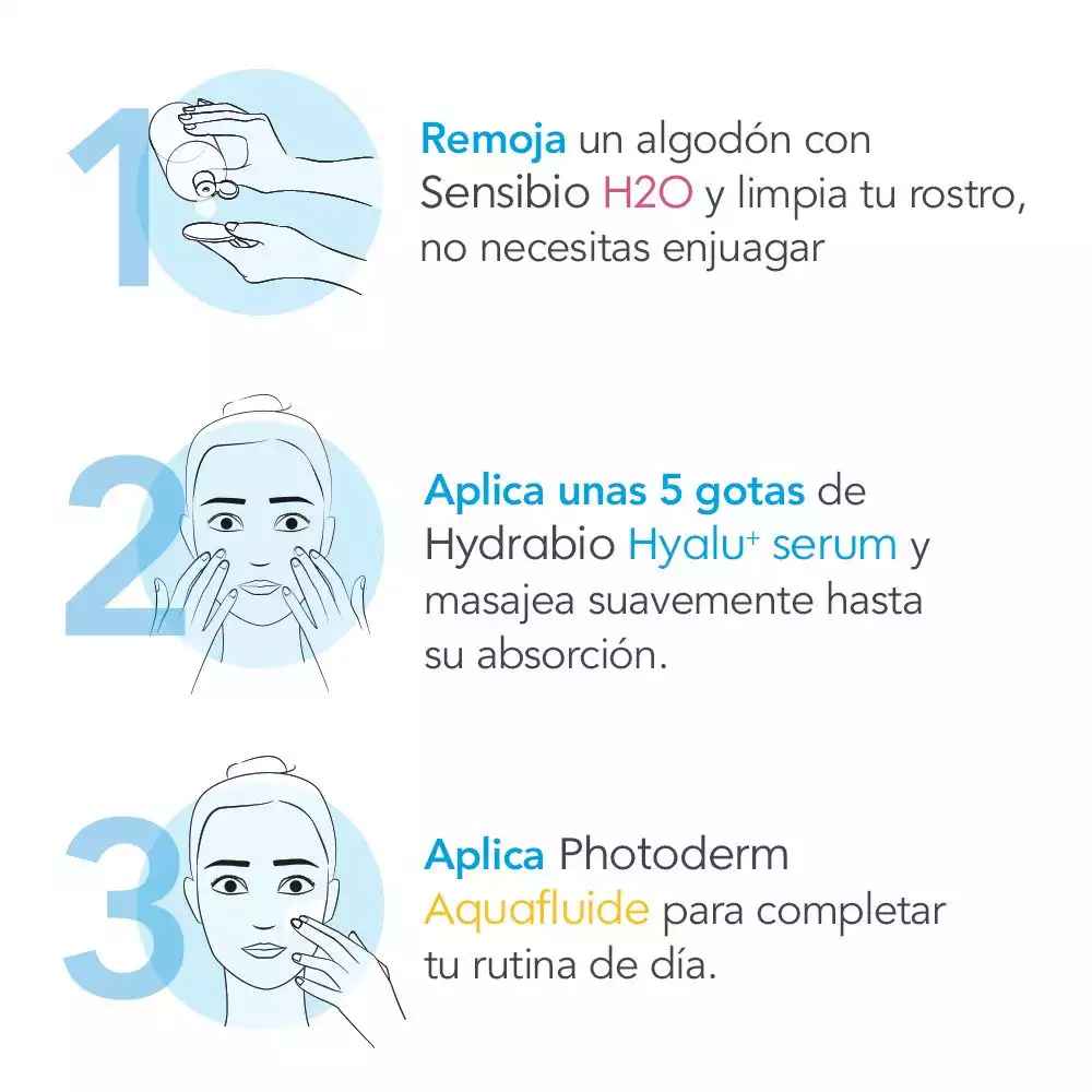 Modo de uso: Aplica el Serum Bioderma Hyalu en la mañana y noche sobre la piel limpia, concentrándote en el rostro y el cuello. Es ideal para usar antes de tu crema hidratante diaria para potenciar la hidratación.
