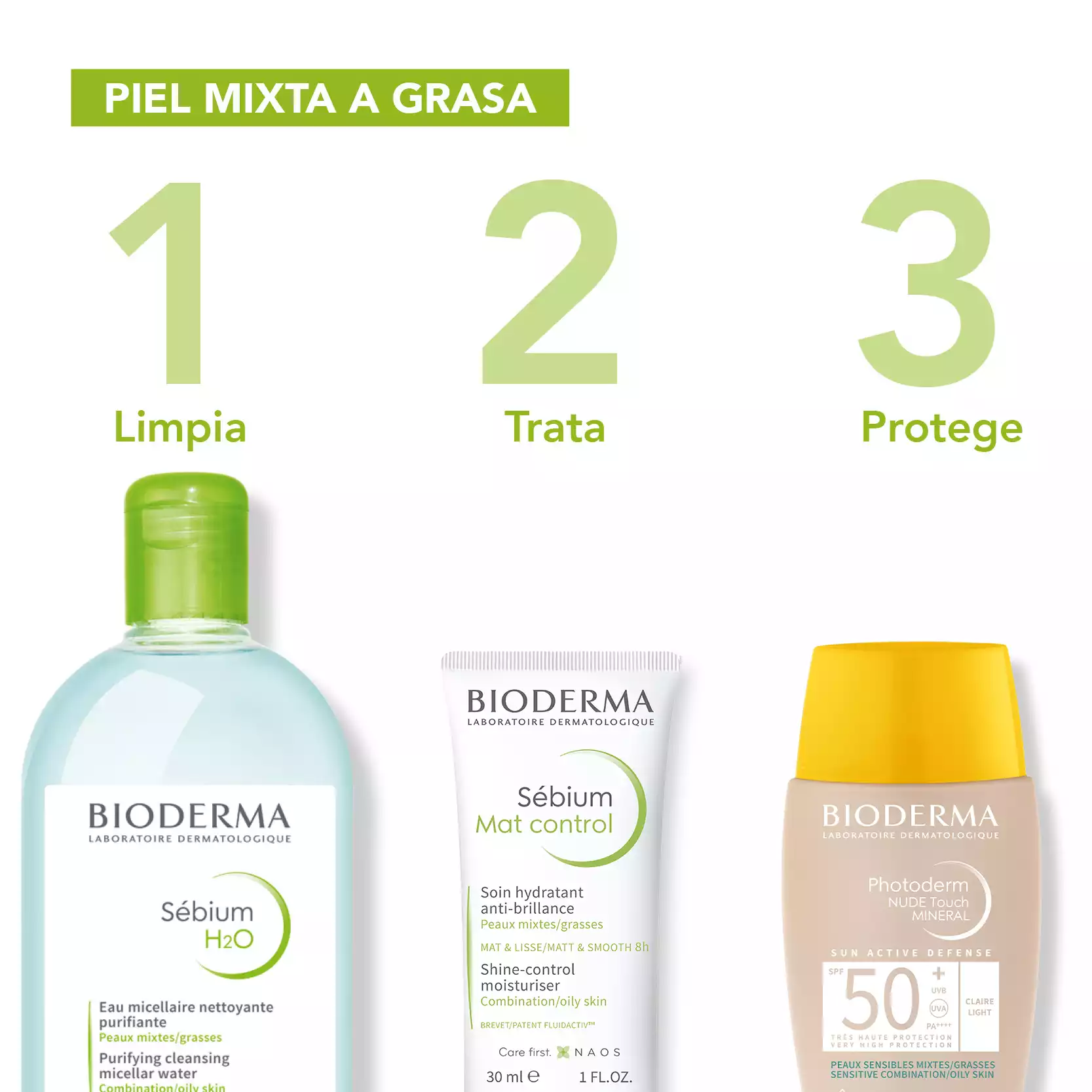 Sébium H2O es el primer agua micelar desmaquillante para las pieles mixtas o grasas. El complejo sebocorrector patentado Fluidactiv® fluidifica de manera biológica el sebo para evitar la obstrucción de los poros y dejar la piel limpia.
