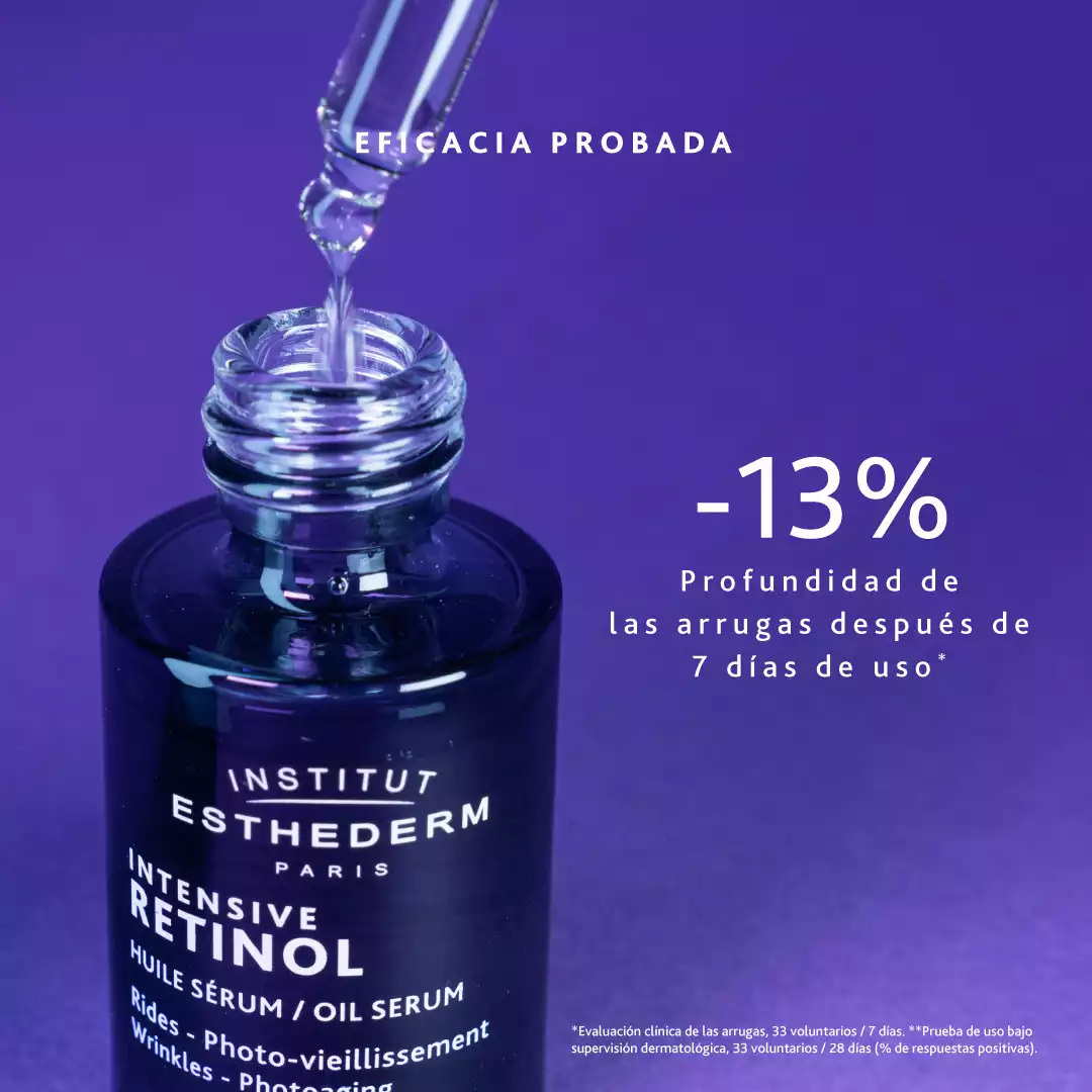 El retinol es un derivado de la vitamina A. Pertenece al grupo de los retinoides, unas moléculas muy valoradas en cosmética antiedad. Al aplicar sérums con retinol sobre la piel se consigue un potente efecto anti envejecimiento. Intensivo Retinol Sérum acelera la renovación epidérmica para alisar y fortalecer la superficie cutánea. Así consigue reducir arrugas profundas y una piel más luminosa y bella.