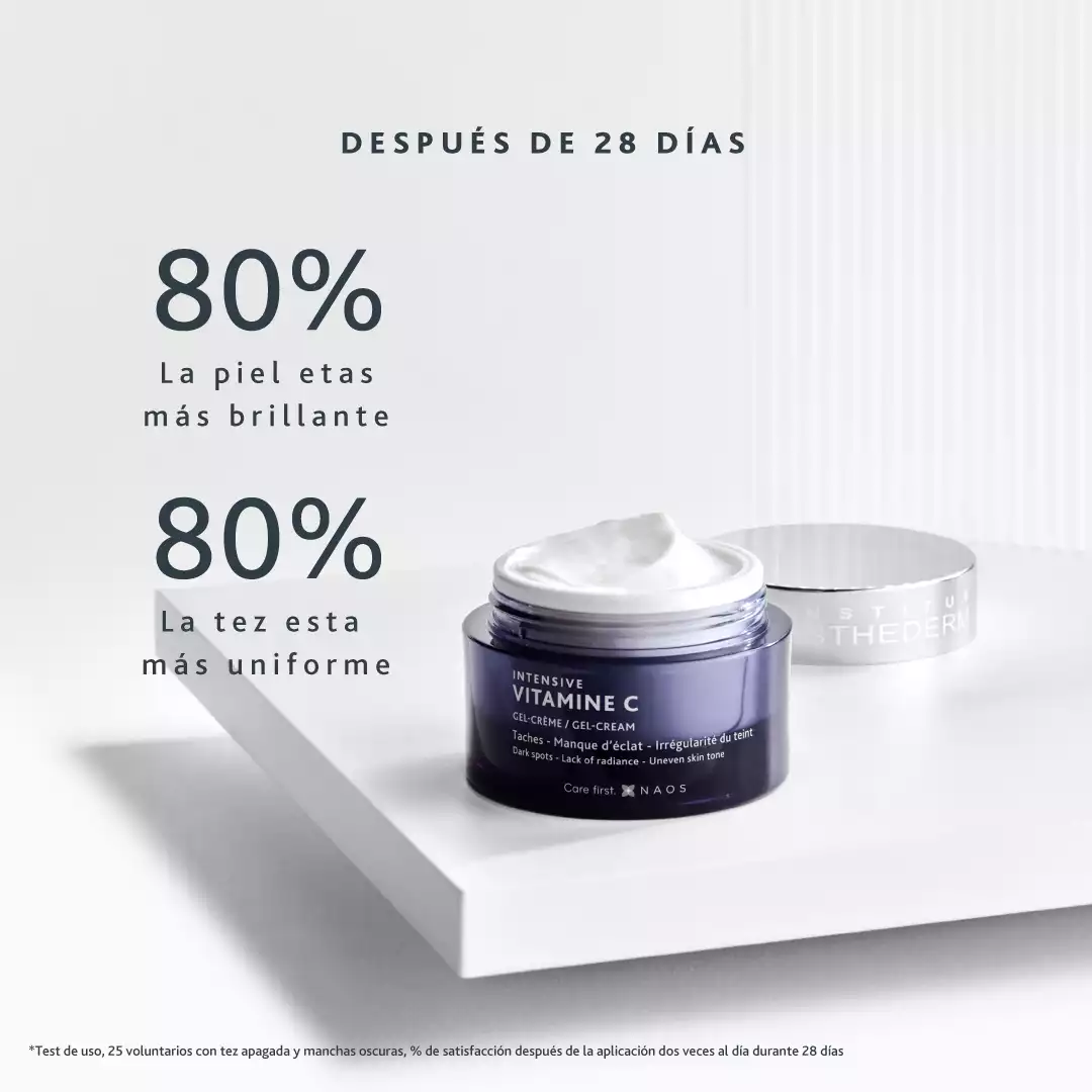 Esta cura de choque antimanchas, antiarrugas y antioxidante actúa como como sinergia perfecta anti-edad para regenerar la epidermis y devolverle toda su luminosidad.Consigue una piel más tonificada y firme. Las arrugas y líneas de expresión se difuminan. Y además, las manchas pigmentarias se atenúan progresivamente. En definitiva, se logra una piel más luminosa y homogénea. El 72% de las usuarias que lo prueban aprecian una reducción de las manchas oscuras, así como de las manchas no visibles. Estudio en 23 voluntarias (30-48 años). Aplicación diaria de Vitamina C Gel-Crema. Día y noche. 28 días.