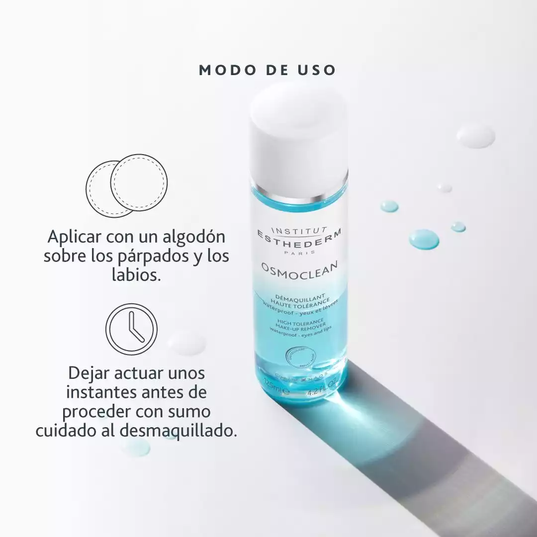 - Desmaquillante bifásico de alta tolerancia formulado en perfecta afinidad con la piel, para todo tipo de maquillaje, incluso las fórmulas resistentes al agua y de larga duración.