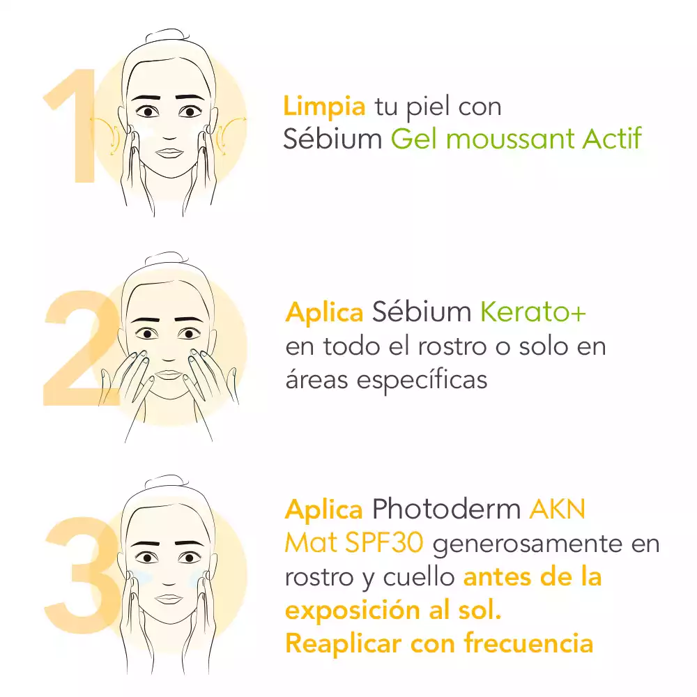 Photoderm AKN Mat SPF 30 es un protector solar facial para piel mixta propensa al acné que previene la aparición de imperfecciones y garantiza una protección muy alta UVA / UVB.