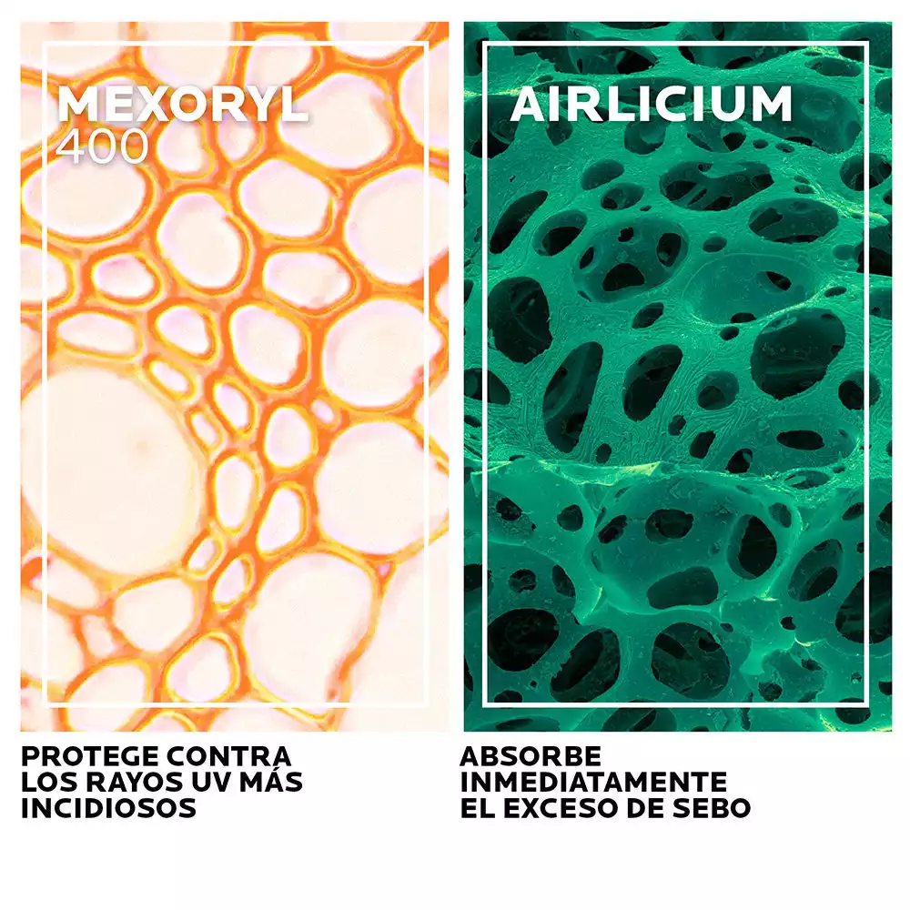- Tecnología Oil Control: AirliciumTM: Micropartículas matificantes que absorben inmediatamente el exceso de sebo y ayudan a controlar las fuentes de brillo, para ayudar a reducir la oleosidad de la piel día tras día.