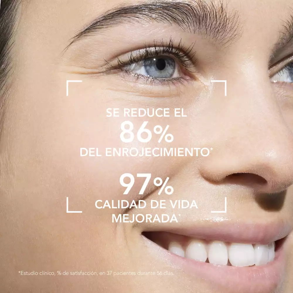 Inhibe la producción de la proteína responsable de la vasodilatación y por tanto, la aparición y persistencia del enrojecimiento.