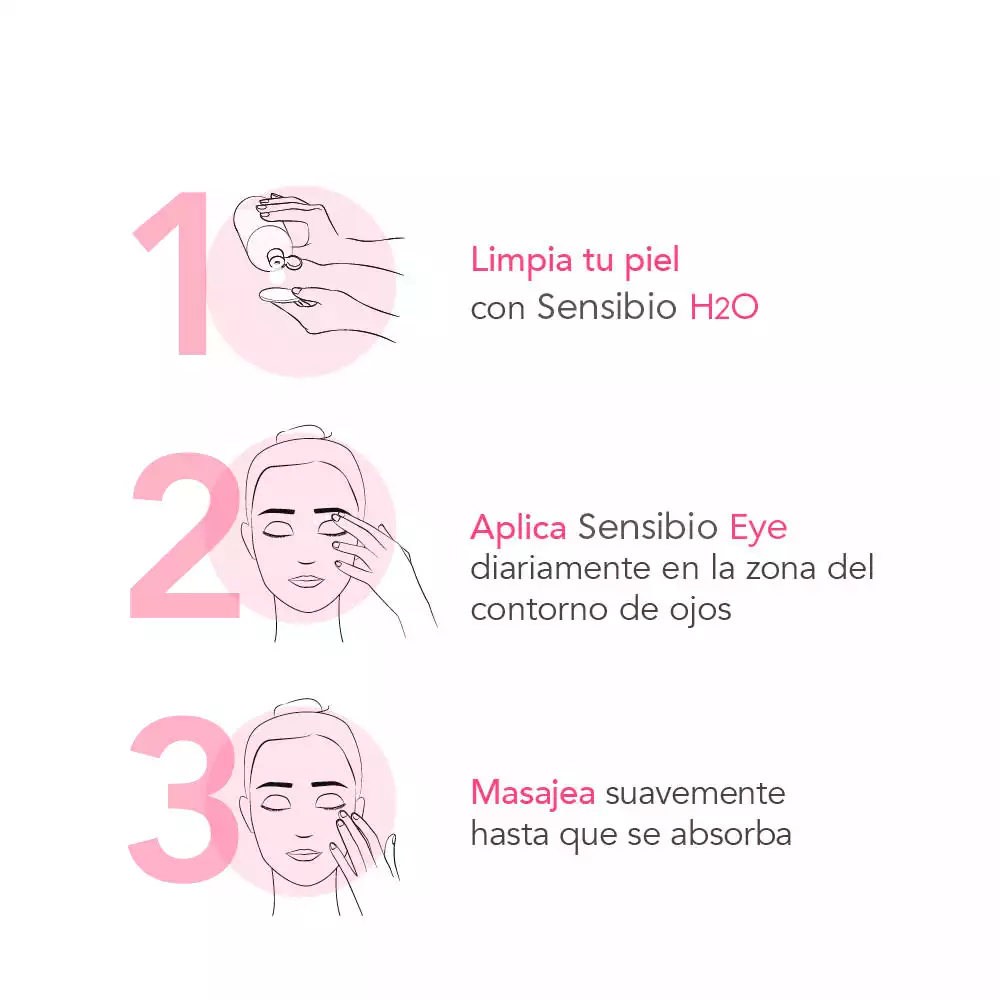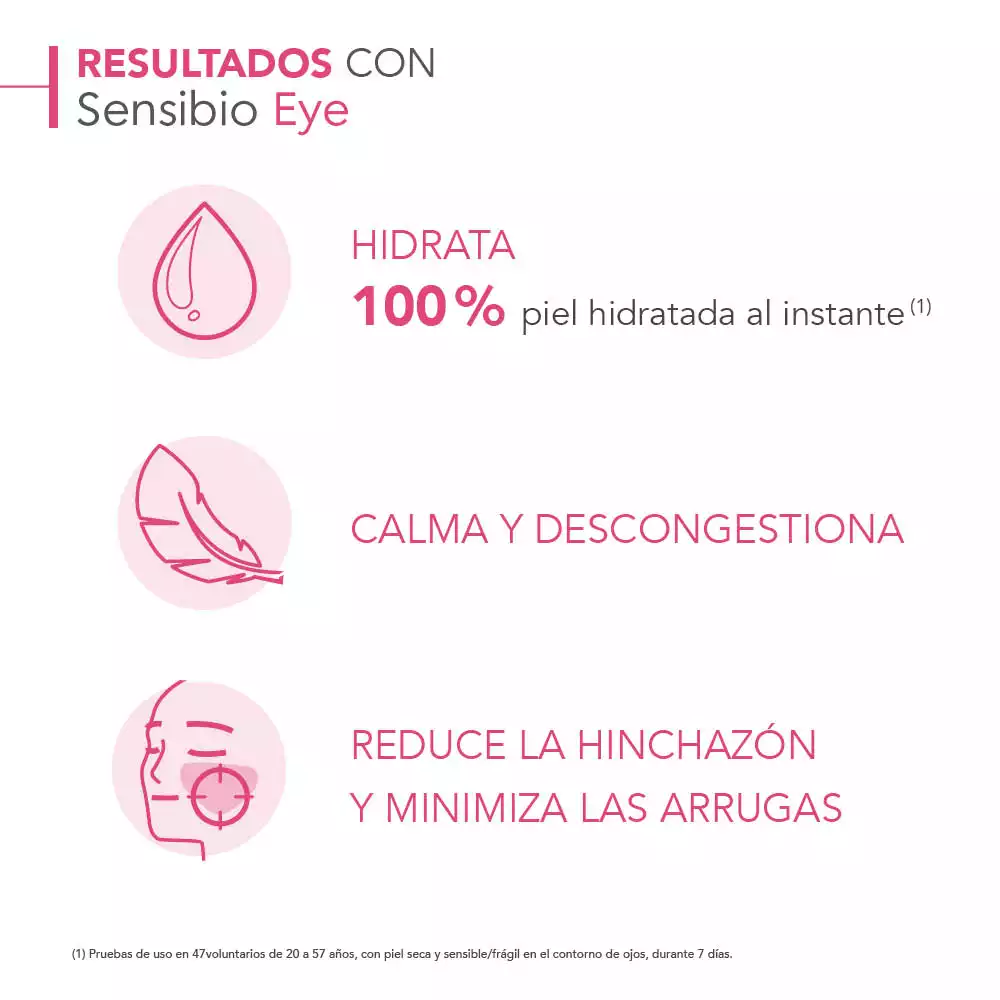 Sensibio Eye refuerza la barrera cutánea y alivia la irritación en el área de los ojos. La cafeína descongestiona y ayuda a reducir la hinchazón. El ácido hialurónico y los polvos que reflejan la luz suavizan y reducen las líneas de las patas de gallo.